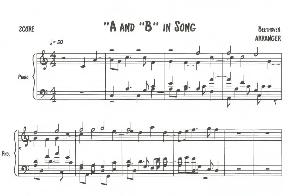 Example 3 (see photo below) renders the first phrase on the piano, though the cross-voices make it a bit difficult.
